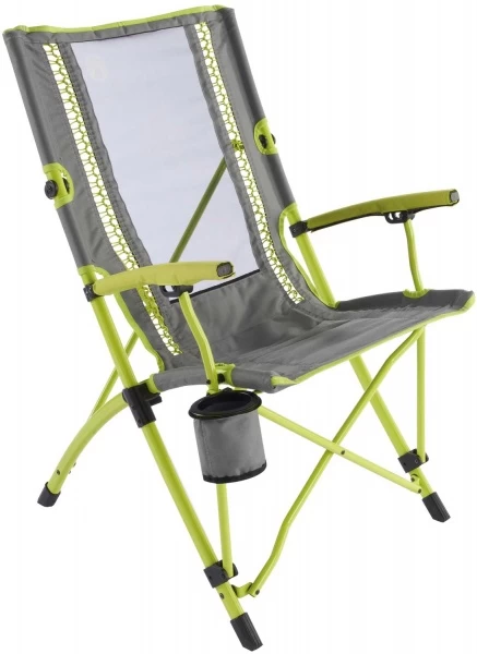 Stabiler und komfortabler Campingstuhl für erholsames Campen. Der Stahlrahmen ist mit einem Bezug aus Nylonnetz und verwobenen Polyester Bungee Seilen versehen. Die Armlehnen sind mit Stoff bezogen. Inkl. ausklappbarem Becherhalter und Tragetasche.