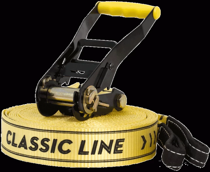 Der Nachfolger der meistverkauften Slackline der Welt! Beliebt bei Einsteigern und Allroundern, die ihre Line überall spannen wollen. Einfache Bedienung und Langlebigkeit – zwei gute Gründe für ihre Popularität und den häufigen Einsatz im Outdoor-Trainings- und Freizeitbereich, sowie Indoor in Sporthallen. Mit integriertem Ratschenschutz (dem RatPad) entspricht das Set den DIN Richtlinien für das Slacklinen und ist darüber hinaus vom TÜV geprüft.