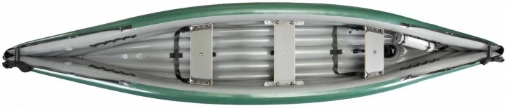 Multifunktioneller Schlauchkanadier in schlanker, traditioneller Form. Der hervorragende Geradeauslauf und das unkomplizierte Handling begeistern besonders Familien und Wasserwanderer. Mit der umfangreichen Komfortausstattung wie z. B. Selbslenzung, dem großzügigen Platzangebot sowie der enormen Tragfähigkeit bietet er auch beste Voraussetzungen für Expeditionen und für Angler. Durch das T-Streben-System wird der Boden gegen die Sitzbänke abgestützt. Das Boot erhält so eine längere Wasserlinie.