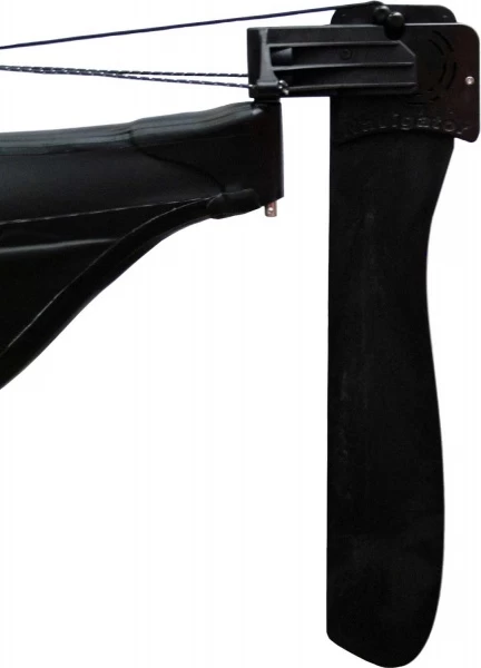 Die Steueranlage kann optional installiert werden. Die Bedienung erfolgt über Fußrasten, die gleichzeitig auch die Funktion der Fußstütze übernehmen. Man hat also einen festen Punkt und steuert das Ruderblatt durch wippen der fest eingestellten Pedale/Auflagen.