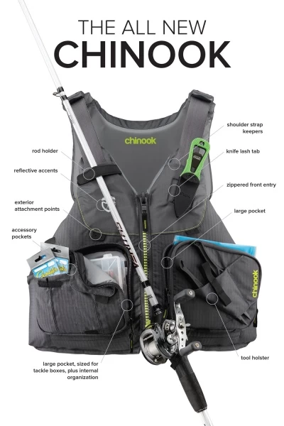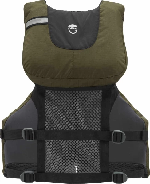 Einfacher Einstieg dank Front RV und gute Passform durch insgesamt acht Einstellgurte. Das untere Rückenteil ist aus Netzmaterial für bessere Belüftung und Sitzkomfort bei Booten mit hoher Lehne. PlushFit™ Schaumstoff und das High-Back-Design ergeben zusammen eine äußerst bequeme Weste für jede Art von Boot- oder Kajaksitz.
