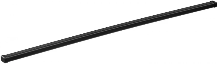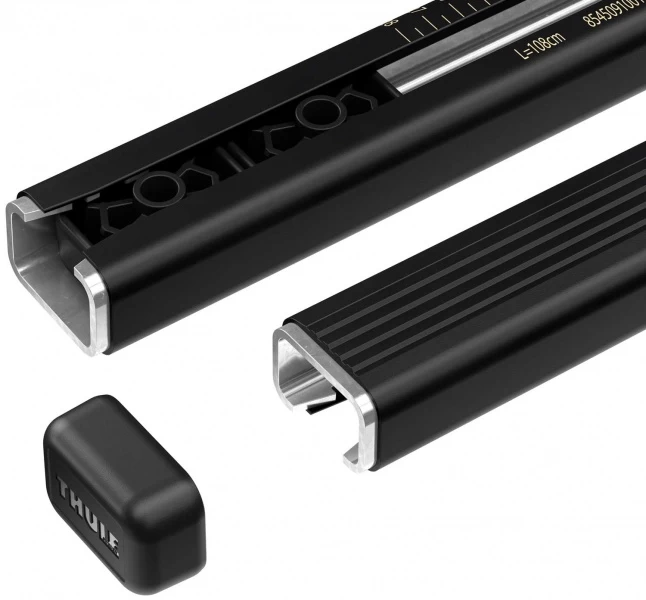 Der Klassiker, Kunststoffummanteltes Stahlprofil mit eingefräster Nut auf der Unterseite zur Aufnahme der Trägerfüße. Die Dachträgerbreite richtet sich nach den Montagepunkten der Füße und muss zum jeweiligen Fahrzeug passen, ist also nicht frei wählbar.