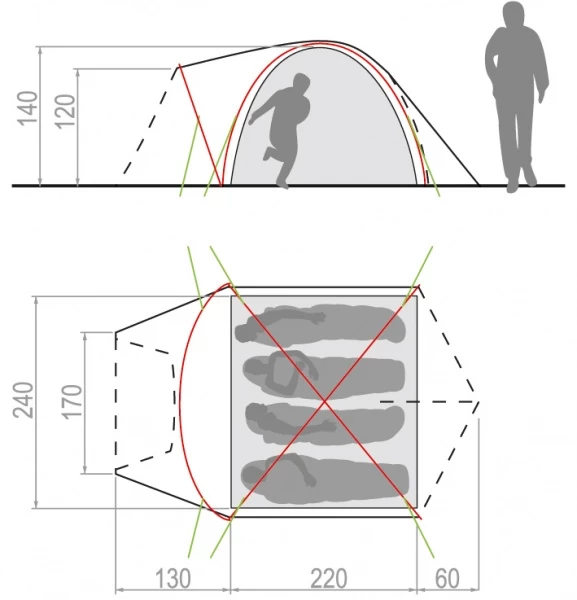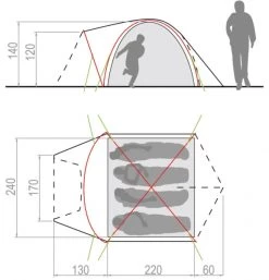 Geräumiges 3 Seasons Kuppelzelt trotz kompakter Abmessungen. Der Einstieg ins Zelt und das unterbringen von Gepäck sind durch den erweiterten Vorraum einfach und bequem gelöst. Das Innenzelt kann bei gutem Wetter als Mückenschutz auch Solo aufgestellt werden. Das Außenzelt ist mit Ventilationsöffnungen versehen. Der Aufbau ist mit 2 Gestängebögen für das Innenzelt und einem Bogen im außenzelt einfach und schnellstens erledigt.