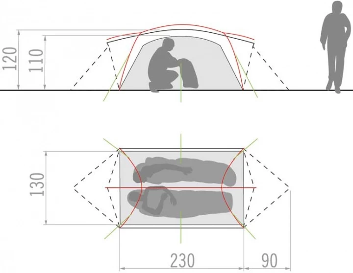 Wenn’s schnell gehen muß: leichtes 3-Seasons Zelt für Trekker und Backpacker. In kürzester Zeit ganz einfach aufzubauen durch die bewährte Mark-Wickelkonstruktion, selbststehend und somit einfach mit den im Lieferumfang enthaltenen Häringen zu spannen. Die Hutzen bieten regengeschütze Belüftung und können über die Verschlüsse an den Eingängen reguliert werden. Die beiden großen Apsiden sind gleichzeitig Ein- bzw. Ausgänge des Längsschläferzeltes.