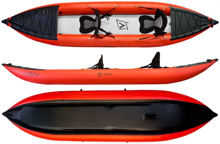 Das Canyon Duo ist ein vielseitiges Freizeit Paddelboot, ein Tandem Kajak mit stabilem Drop-Stitch Boden, kleinem Packmaß und schnellem Aufbau. Durch die seitlichen Luftschläche ist das Boot kippstabil und sicher. Mit dem steifen Drop-Stitch Flachboden eignet sich das Freizeitboot für Seen, Flüsse und das Meer. Die Aufbau-/Pumpzeit beträgt etwa 10 Minuten.